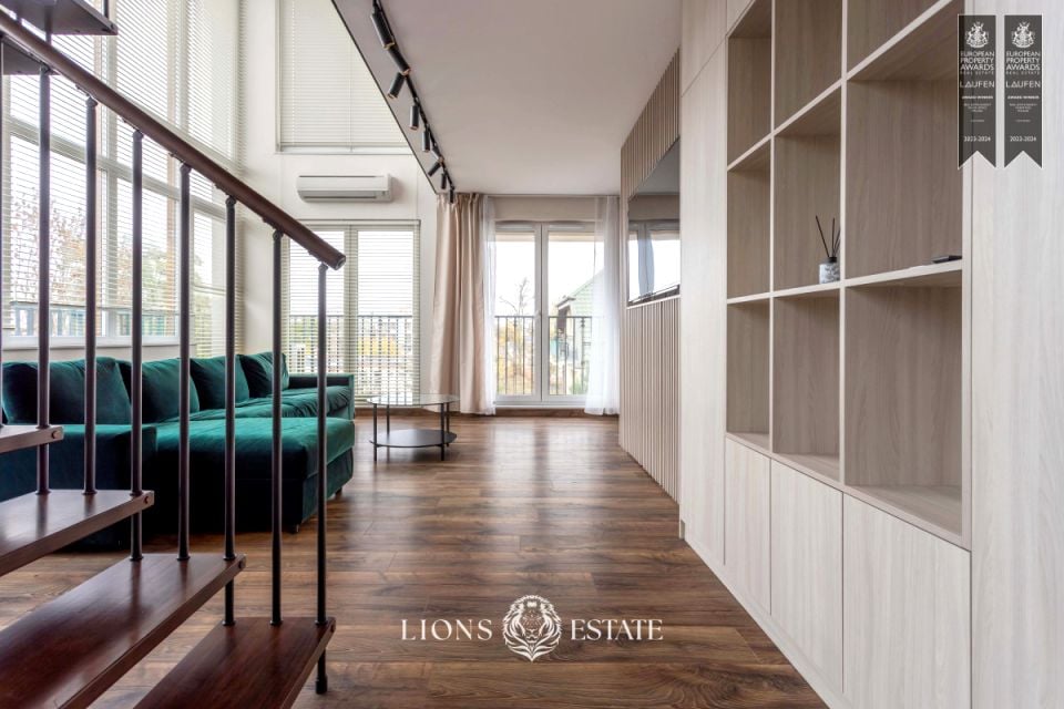 A two-level apartment with an area of 120 m², located in a modern building from 2024, equipped with elevators and an underground garage. The interior has been designed with attention to every detail and finished to a high standard.